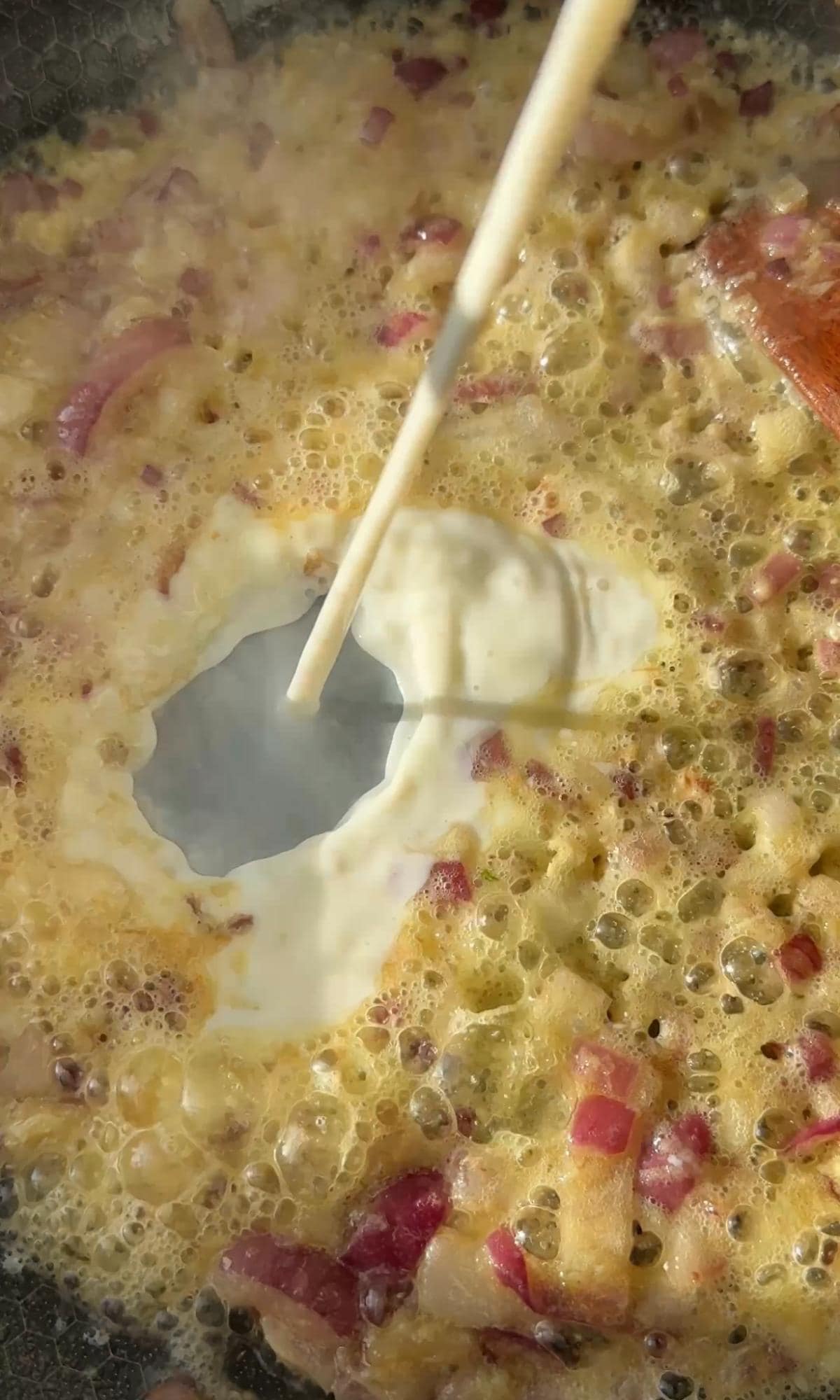 Cooked ham: I just use shop-bought ham, chopped, but you could use leftover Christmas ham or shredded ham hock too.